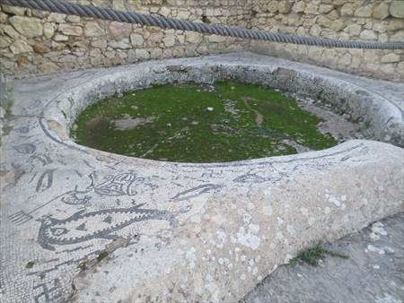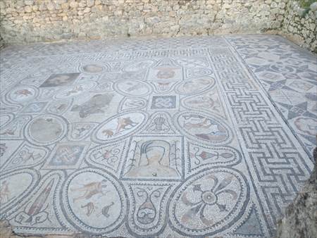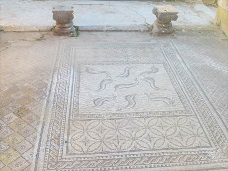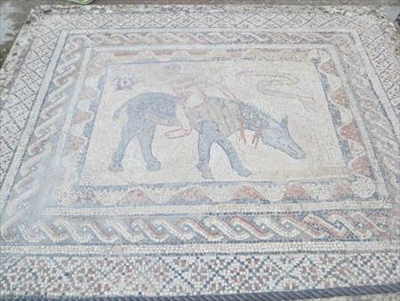 オルフェウスの家のモザイクには、サルとかゾウなどの動物や木が描かれています
