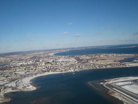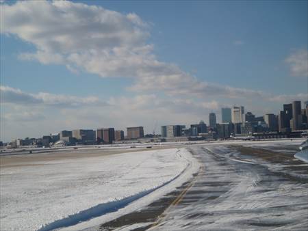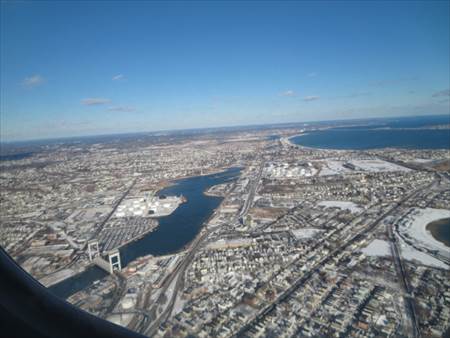 機内から見たボストンの街並み