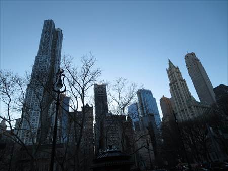 Brooklyn Bridge-City Hall駅に到着し、ブルックリン・ブリッジ側の出口を出ると高層ビル群!