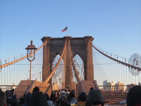 寒かったです。ブルックリン・ブリッジの途中から、自由の女神が見えました。