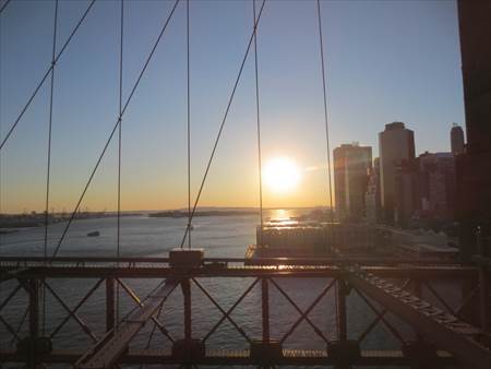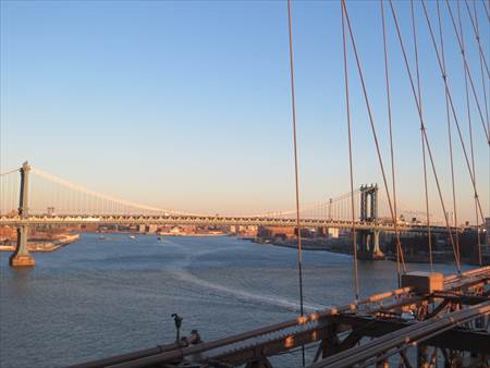 イーストリバーと、マンハッタン橋。間もなく日の入り。