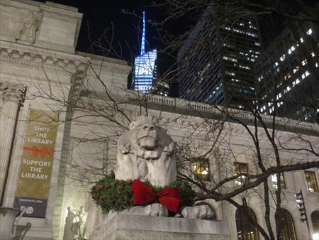 ダンボから地下鉄でマンハッタンの中心部へ。最初に訪れたのが、ニューヨーク公立図書館本館 New York Public Library。左右にライオンの像があり、それぞれ、アスター、レノックスという名前がつけられているらしい。N.Y.で最も愛されている像として市民に親しまれているそうです。