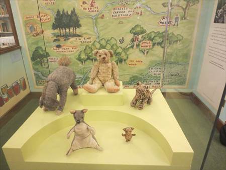 このクマのぬいぐるみは、物語の作者A.Aミルンが息子の1歳の誕生日に送ったもの。その後も、毎年誕生日に息子へぬいぐるみをプレゼントし続けて、ストーリーにある仲間たちが出来たそうです。