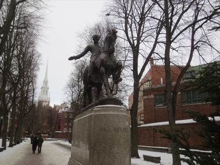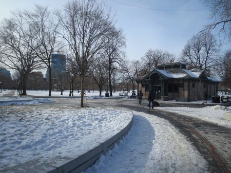 快晴の中・・・といっても、この日の最高気温が氷点下10度ぐらいでした。ボストンの中心部にある、アメリカ最古の公園「ボストンコモン」からフリーダムトレイルに出発しました