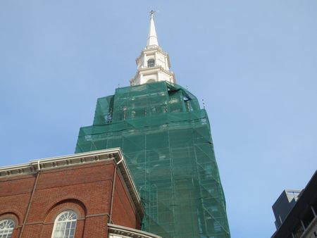 あいにく、修復工事中でした。尖塔の高さは65mあるボストンのランドマークです。
