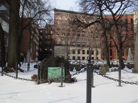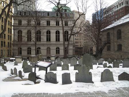 その隣にあるのが、「グラナリー墓地」。革命時代に活躍した愛国者が数多く眠る墓地で、独立宣言書に署名をした、ジョン・ハンコック、ロバート・トリートペイン、サミュエル・アダムスらの墓があります。 この他、ポール・リビア、ベンジャミン・フランクリンの両親やボストン虐殺事件の被害者達が眠っているそうです。