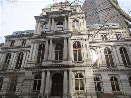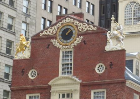 旧マサチューセッツ州議事堂。1713年に建てられた、ボーストン市内で現存する最古の公共の建築物です。建物の装飾も豪華です。