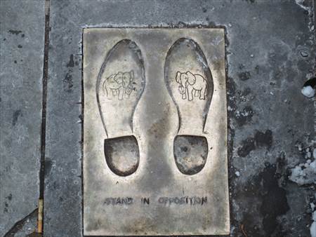 その足元には「ゾウの絵のある足型」、共和党のシンボルだそうです。