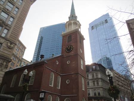 次は、「オールド・ノース教会」。大きくて近くから全体を撮ることができませんでした。1723年に建立されたボストンに現存する最古の教会で高さは58mあります。