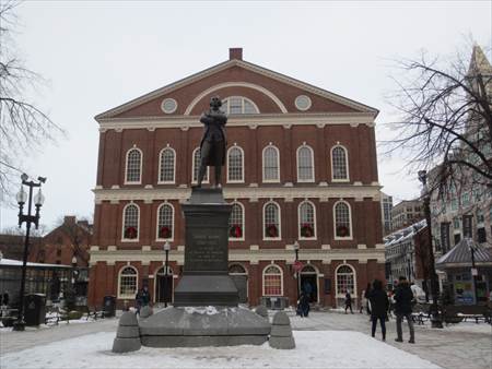 1742年に貿易商のピーター・ファニュエル氏が建ててボストン市に寄贈した建物です。正面の像は、サミュエル・アダムス。ボストンの地ビールで有名です。
