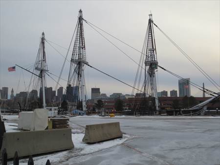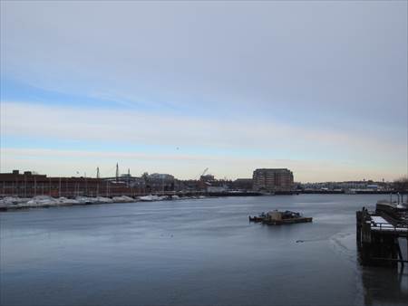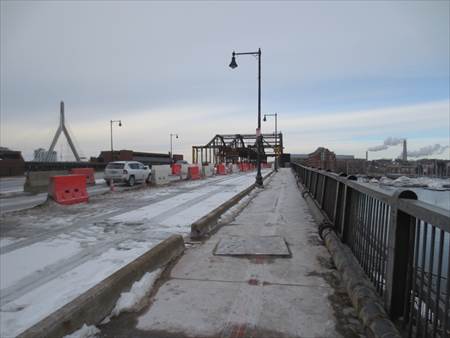 寒い中、チャールズタウン橋を渡ります。