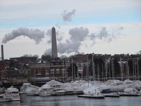 遠くに見える塔が、フリーダムトレイルの終点、バンカーヒル記念塔です。
