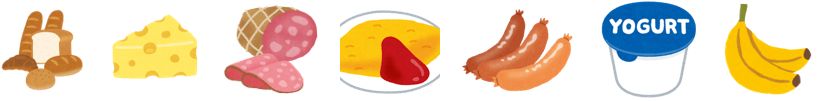 これは、火を通さない冷たい料理(コールドミール)が中心で、パン、バター、ジャム、チーズ、ハム、ヨーグルト、フルーツなどです。