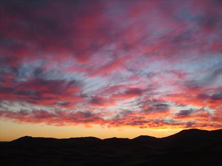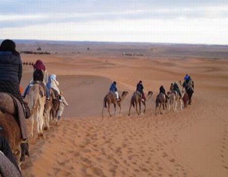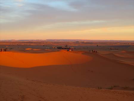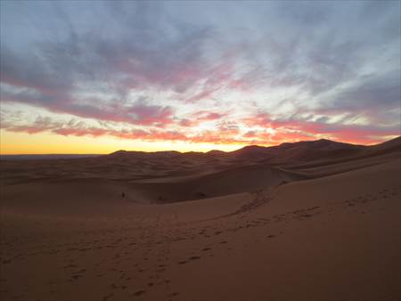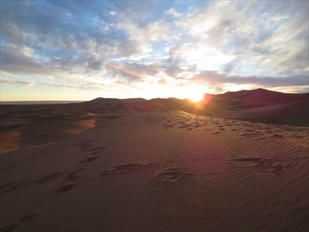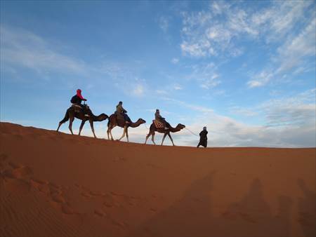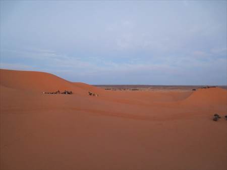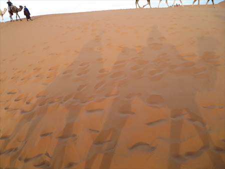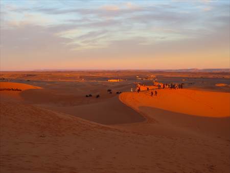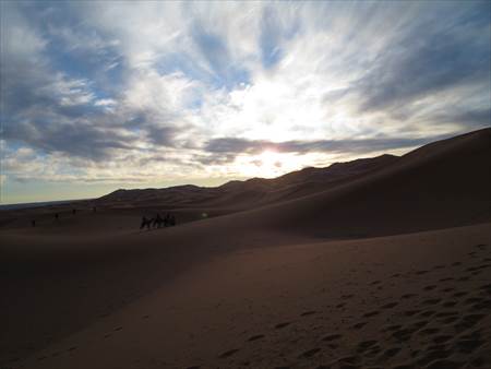 メルズーガからラクダに乗って、砂漠の小高い丘に到着。