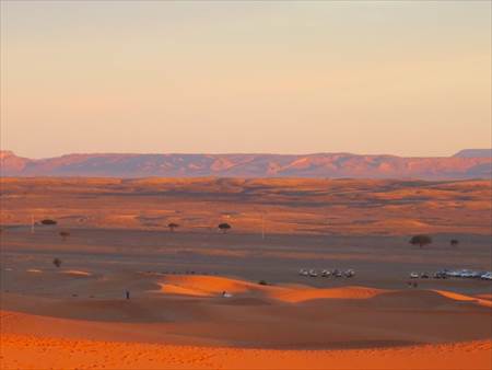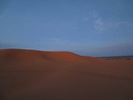 砂しかない砂漠。この日は砂嵐もなく、穏やかな夜明けでした。