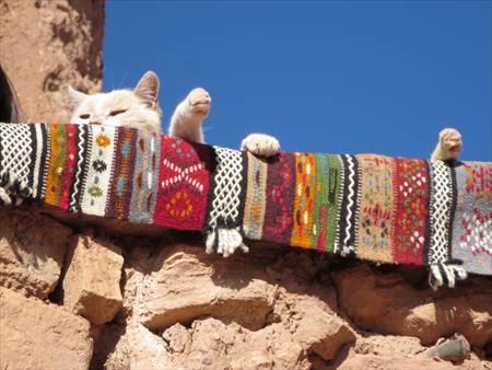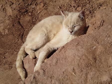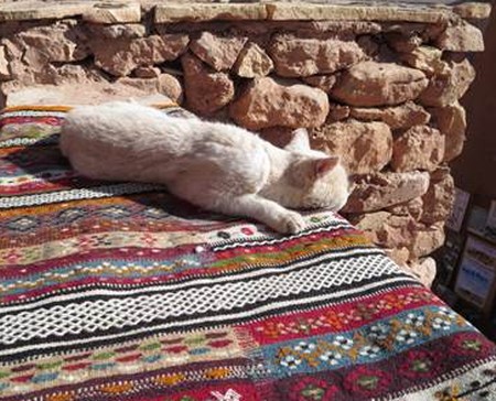 色んな所でネコを見ましたが、アイト・ベン・ハッドゥにもいました。日向ぼっこしながら、お休み中。