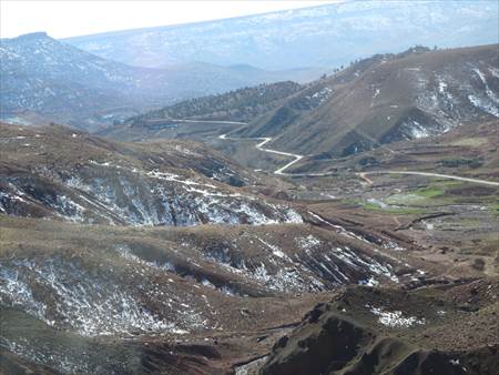 峠道をひたすら走っていきました。モロッコでは何か所かありましたが、この山に書かれた文字は、『神話・国民・国王』を意味していて、「国が一体となって進んでいこう」というモロッコの国家スローガンだそうです。