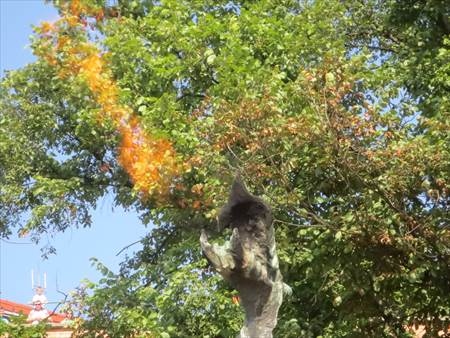 竜の洞窟の出口に、建つ竜の像。