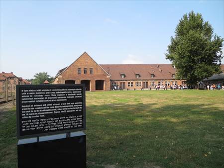 アウシュビッツ博物館へ。博物館といっても、新たに建物を建てたわけではなく、当時の建物がそのままの状態で保存され、一部の建物の内部が博物館として公開されているものです。