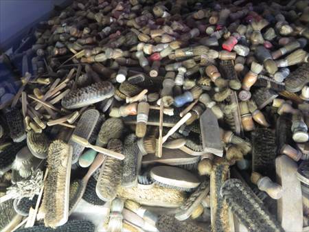 ブラシ、櫛、化粧品などの缶も。