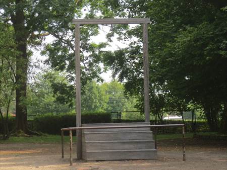 被収容者の人数を確認していた広場には、締首台もあります。