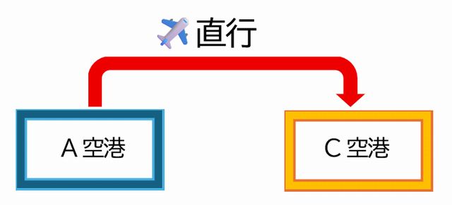 A空港からC空港への直行便の場合、その名の通り、A空港を離陸後、C空港まで直行で飛行します。
