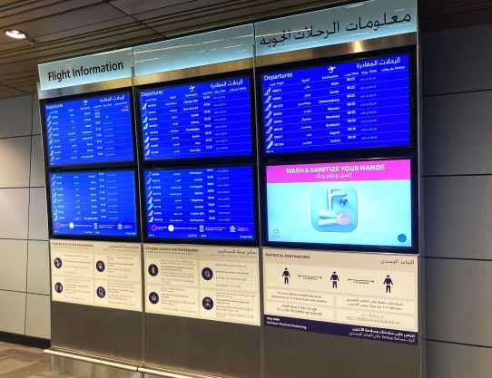 次に乗る飛行機の搭乗口とターミナル、搭乗開始時刻や搭乗締切時間などは、中継地の空港(B空港)ロビー内にあるモニター等で最新の情報を確認しましょう。